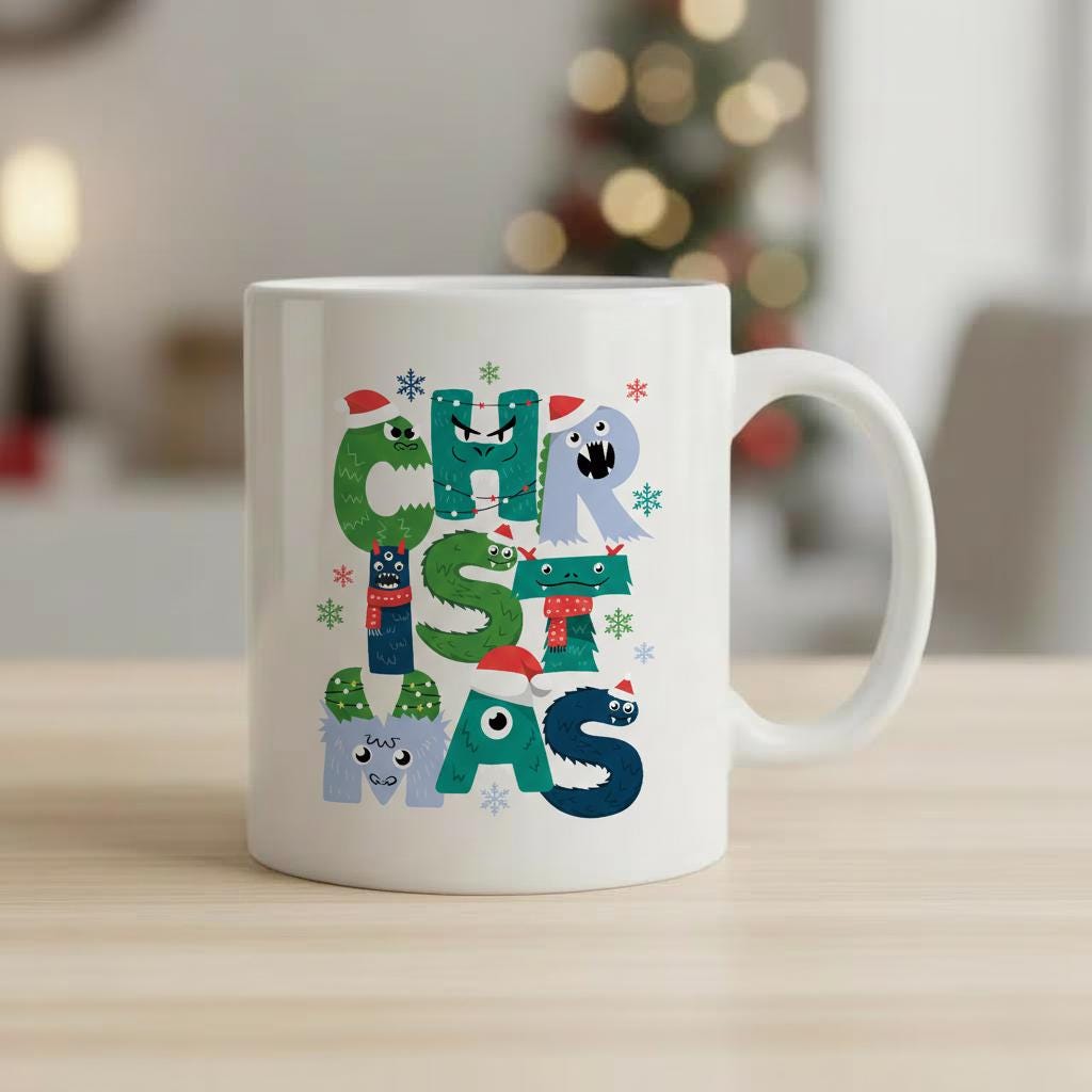 This design injects a playful, quirky twist into classic holiday cheer by combining traditional Christmas spirit with mischievous and adorable monster characters. It's a high-quality digital artwork perfect for kids and humor-loving adults