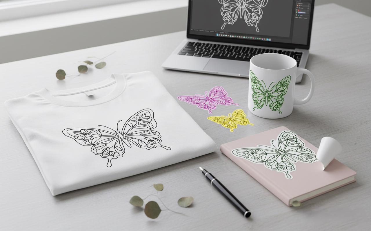 This unique, detailed butterfly line art is the perfect artwork for all your digital and physical projects. The delicate geometric patterns and floral motifs on the butterfly's wings are meticulously drawn to add a sophisticated, modern touch to your design. This is a digital download; no physical product will be shipped.