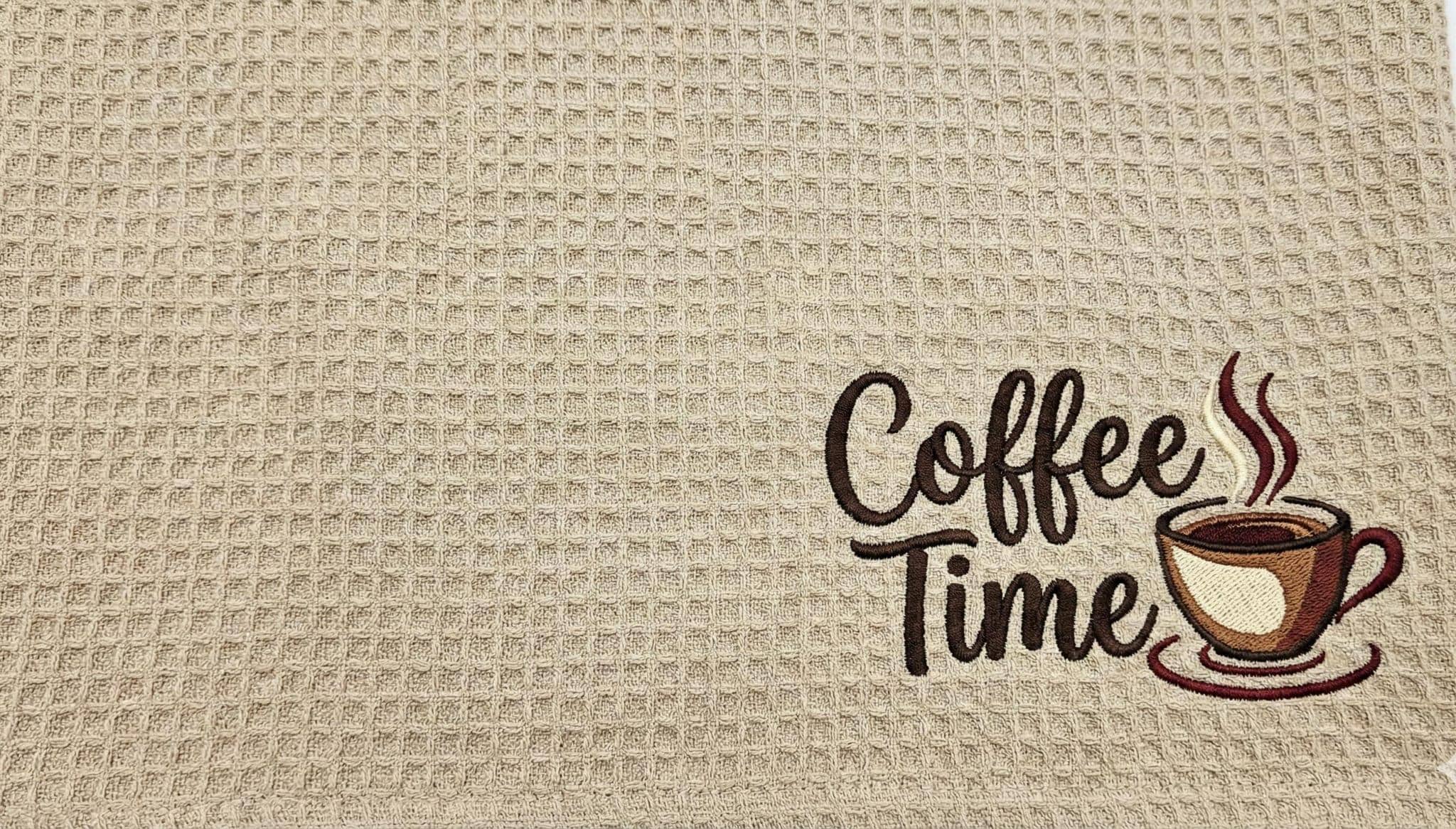 This digital embroidery file is a mouthwatering design that captures the warmth and joy of a coffee break. The playful, flowing "Coffee Time" text is complemented by a steaming, richly filled coffee cup. Perfect for kitchen aprons, coffee lover gifts, and kitchen decor projects.